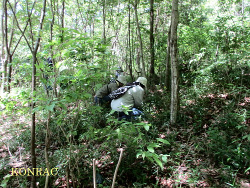 今回のモウソウチク除伐は、除伐容易な筍〜枝を出す前の状態のものを全て伐り捨てることで良いと思っていたのですが、 皆、サッサと、アズマネザサのヤブに入って、竹状態のモウソウチクの除伐を始めてくれました。 一番の関心事である斜面はどうかと見れば、コナラが発芽し、驚いたことに、キンランが咲いている場所もありました。