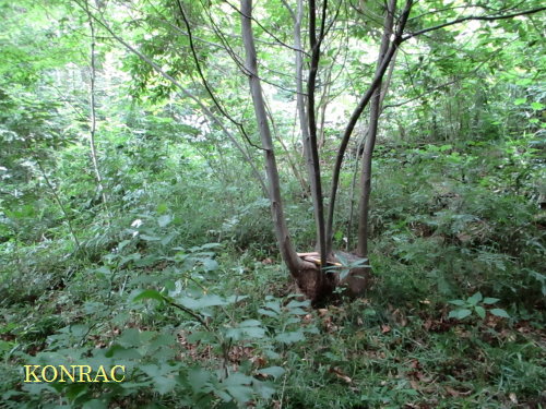 萌芽株の根元周りのアズマネザサを刈り、萌芽更新観察路を設定するための地点の一つとしての目印(竹串)立てが進むと、観察路にすべきルートが見えてきた場所もできました。