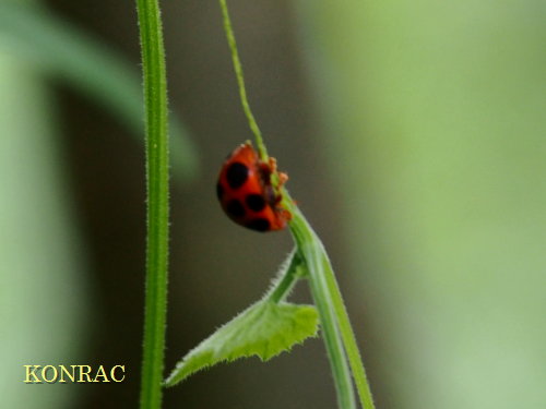 この日の萌芽更新地区では、林床のヤマユリの蕾は白くなっていました。 また、林内を飛びぬける黒いアゲハチョウやコミスジなどのほか、ハネナシコロギス、トホシテントウ、クサカゲロウなどの昆虫に出会いました。 ハネナシコロギスは、ブナ科樹木に依存する傾向があるらしいので、クヌギ、コナラの多い萌芽更新地区の雑木林の林縁で見られたことを嬉しく思いました。