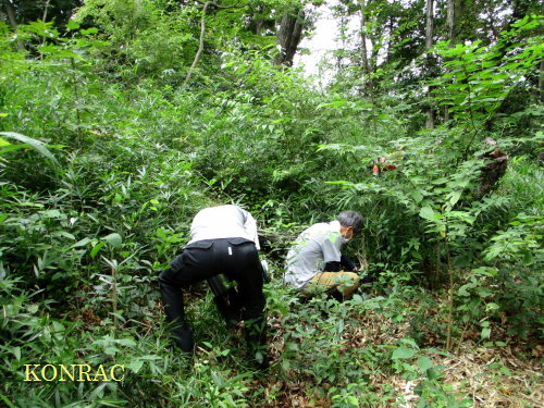 アズマネザサは、1〜1.5mの高さに繁茂していました。 7/23(土)は余りの暑さに、1時間しか活動できませんでしたが、この日は、適当な距離を離して、アズマネザサ刈りに夢中になっていました。