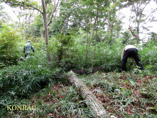 今回の参加者は、皆さん、活動経験も多かったので、一人一人適当に離れて、自由に楽しんでもらうことにして、岩田は要所要所でアズマネザサ刈りを行いながら全域の状態観察を行いました。