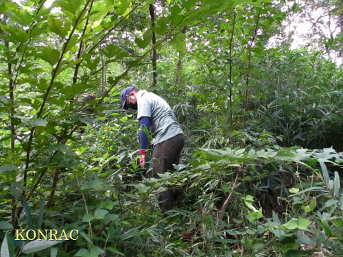 ベースベンチに荷物を置いて、直ぐに、前回の続きのアズマネザサ刈りを始めました。