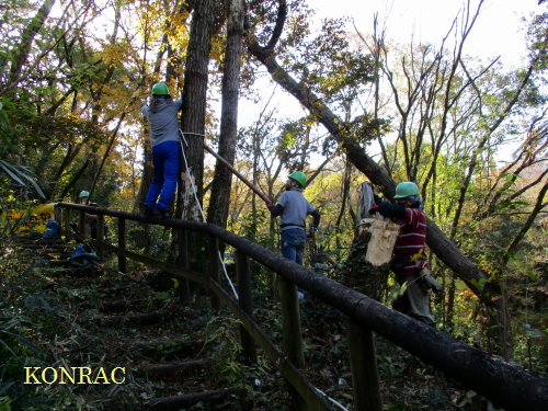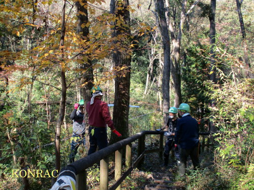 この日は、ハンノキ林東地区(A07-12) の皆伐更新として 10/15(土)から始めた大径木伐採の第5回目を行いました。 秋になって、天気が良いと、生田緑地中央地区の北側の谷戸でも、来園者が多くなっているので、里山倶楽部の活動時は当該地区の上の園路を通行止めにしていただきました。
