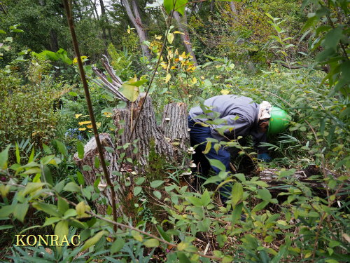 大径木を伐採していた時に、止むを得ず、伐採することになったアオハダが、沢山の萌芽枝を出していました。 また、直ぐ隣にあった大径木のクヌギは、伐採後、勢いよく萌芽枝を伸ばしています。