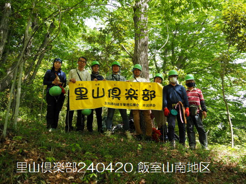 令和 6 年度第 3 回里山倶楽部 モウソウチク除伐とアズマネザサ刈り 日 時)2024年4月20(土) 9:00〜12:00 晴 場 所)生田緑地 飯室山南地区 参加者)東陽一、伊澤高行、加登勇司、北川英樹、佐藤優子 (9:00〜11:00)廣瀬朗子、吉澤正一 事務局)岩田臣生 計 8名 今年度の第3回里山倶楽部は、飯室山南地区に侵入したモウソウチクの除伐とアズマネザサ刈りを行うことにしました。 朝、桝形山の上空をトビが滑空していました。 飯室山南地区では、2010年末に、20m×20mの範囲の雑木林の皆伐を行い、翌年以降、 埋土種子から発芽した実生木の育成と切株からの萌芽の保護のためのアズマネザサ刈りを続けていました。 この皆伐更新地区に隣接する雑木林にはモウソウチクが侵入していて、やがて、皆伐更新地区の中にも侵入し始めました。 皆伐更新による若い雑木林の育成のためには、この地域に侵入して来るモウソウチクを除伐することが必要であると考えるに至りました。 そこで、2014/11/15(土)に、皆伐更新地区隣接林のモウソウチク除伐を活動目的とする里山倶楽部を開催しました。 実は、当該地区の皆伐は、北部公園事務所が業者に発注して行ったもので、 私たちは、2010年の皆伐の直前に、ノコギリを使って、太さ30cm超のコナラを伐採することを体験させてもらって、 ノコギリを使った伐採方法を教わっただけだったのです。 2014年のモウソウチク除伐は、里山倶楽部としては、非常に危険を感じる植生管理でしたので、事務局としては眠れない前夜を経験させられました。 しかし、モウソウチクでも、タケノコのうちに除伐するのであれば、容易いことだと気がつき、 2016年には、春に除伐することを始めました。 大部分をタケノコのうちに除伐してしまえば、竹になったモウソウチクの除伐は、普通に植生管理の事として除伐すれば良い程度になります。 この日の活動の前半は、皆伐更新地区周辺の広い範囲のタケノコの除伐を行いました。 除伐したタケノコは、参加した皆さんに持ち帰ってもらうことにしました。