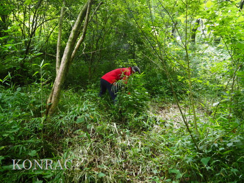 萌芽更新中の切り株の周囲は、できるだけアズマネザサを刈るようにしました。