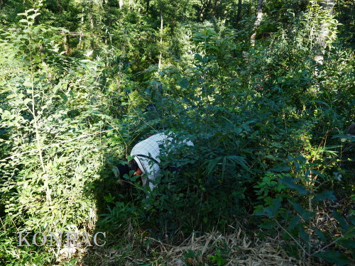今夏の猛暑は植物の生長を促してくれ、ナラ枯れコナラなどの伐採後の当該地区は、アズマネザサや多様な実生などが繁茂していました。 伐採更新に着手する前のアズマネザサに覆われた当該地区を思い出させてくれるような、茂みに潜っての除伐、刈り取りとなりました。