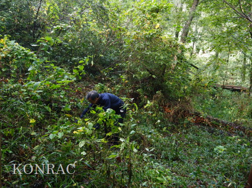 東支谷戸に入って、先ずは、荷物を置く場所を確保して、それから谷底の平坦な場所のアズマネザサ刈り、ヤマグワの仲間の除伐などを行いました。