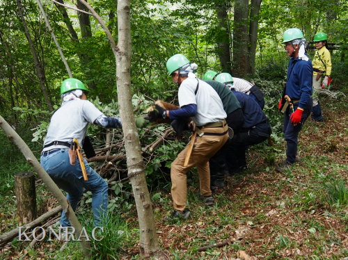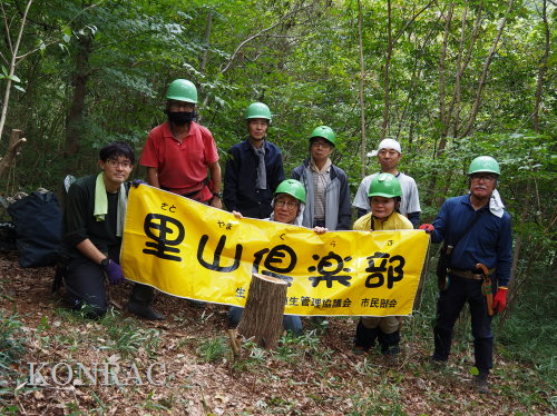 休憩して、伐採したコナラの切り株を中心に、集合写真を撮りました。