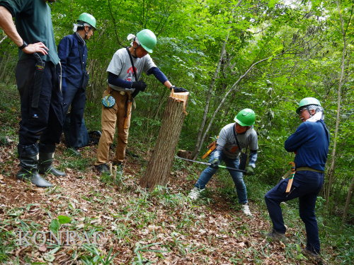 今回伐採したコナラは、必ず萌芽更新させたい樹木ですので、地上 30cmほどの高さで伐り直しました。