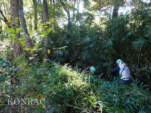 並行して、更新中の斜面のアズマネザサ、コナラやヤマザクラ以外の実生などを刈りました。