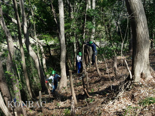 令和 7 年度第 1 回里山倶楽部 芝生広場西地区の常緑樹伐採(5日目) 日 時)2025年4月5日(土) 9:00〜12:00 晴 場 所)生田緑地 芝生広場西地区 参加者)東 陽一、加登勇司、北川英樹、吉澤正一 事務局)岩田臣生 計 5名