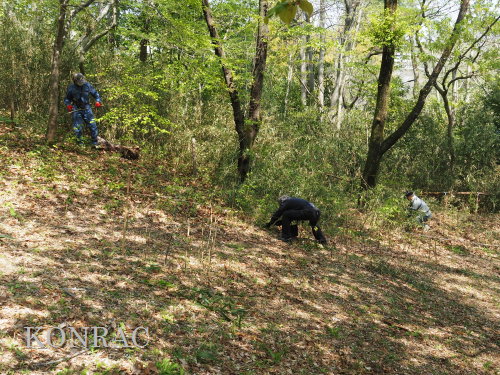 令和 7 年度第 2 回里山倶楽部 芝生広場のフデリンドウ、キクザキイチゲ保護のためのアズマネザサ刈り 日 時)2025年4月12日(土) 9:00〜12:00 晴 場 所)生田緑地 芝生広場 参加者)東 陽一、加登勇司、北川英樹、廣瀬朗子、政野祐一、吉澤正一 事務局)岩田臣生 計 7名