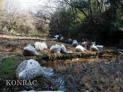 ● 2/19(木) 落葉を田圃に投入、城山下谷戸のアズマネザサ刈り (1)