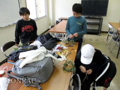 全員のリースづくりが終わったので、各自の作品を持って、集合写真を撮りました。