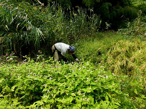 下の田圃周辺はツリフネソウやオオミゾソバが咲いています。