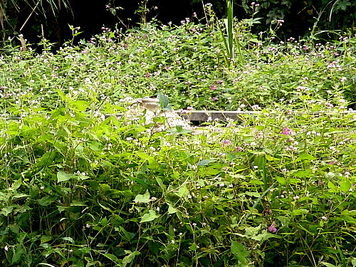 水辺調査(ボントクタデ採集) 日時 2013/10/3(木) 13:00〜14:00 晴 場所 生田緑地 二ケ領用水(多摩区登戸) 参加者 岩田芳美 植物班に頼まれたボントクタデを採集に行きました。