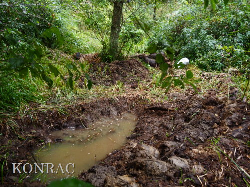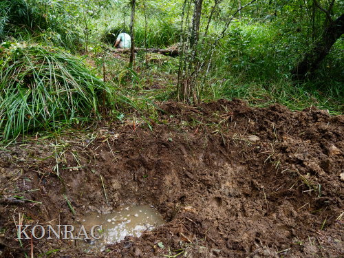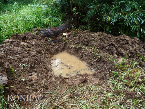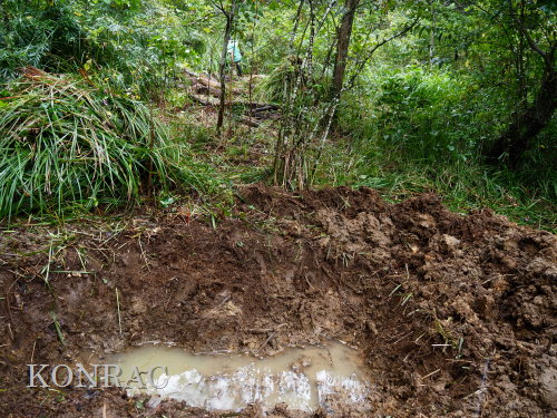途中、水が染み出している所がありましたので、そこに小さな穴を掘ってみました。