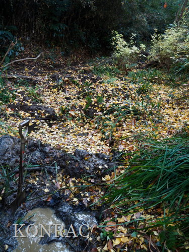 野鳥の森の水流の水辺保全 日 時)12月2日(火) 9:00〜12:00 曇 場 所)生田緑地 野鳥の森の水辺(B01) 活動者)岩田臣生、伊澤高行 野鳥の森の水流の保全活動は、14年前、2011/11/29(火)に始めた活動で、 数年に1回、水流に溜まった土砂を掘り上げています。 今年は、2025/11/27(木)に行いましたが全域の泥上げを済ますことができませんでしたので、 今回、その続きを行いました。