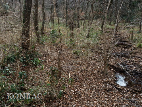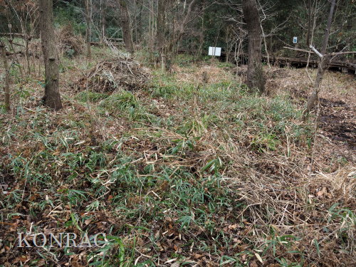 昨夜の降雨のお陰で、辺りの地表は湿って、春を感じさせてくれるようになりました。 ハンノキ林の下草刈りは5回目になりますが、私の刈り方は雑なので、今まで刈った範囲を見ても、草刈りが済んでいるようには見えません。 相変わらず、ミヤマカンスゲの大株が繁茂していますので、ジロボウエンゴサクは発芽できないかも知れません。 主な目的は、アズマネザサ、オカウコギ、ノイバラ、フジなどのツル植物がつくっていたヤブを解消し、実生低木などを低くすることなどです。 また、落枝や、夏期に刈って置いてあったミヤマシラスゲなどの片付けも行いました。 東側の水流は涸れていましたが、西側の水流は開放水面が保たれていました。