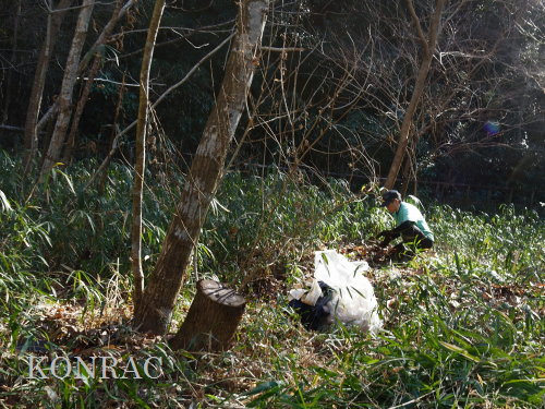 2007年の覆土が無かった所は、ヤマグワなどが育っていましたが、草本層には、アズマネザサ、フキなどが生えていました。 ここのアズマネザサ刈りも行いました。