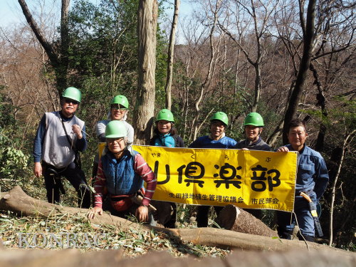 ● 2/19(木) 落葉を田圃に投入、城山下谷戸のアズマネザサ刈り (1)