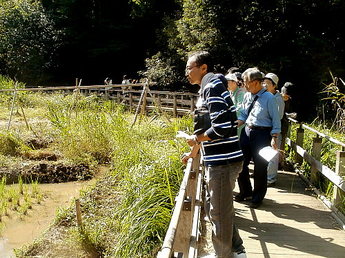 日時 2012/10/21(日) 10:00〜12:00 晴 ガイド講師 水田ビオトープ班 岩田臣生、サポート)岩田芳美 青少年科学館/ 観察会参加者 20人(大人 16人、子ども 4人) この日は天候に恵まれ、谷戸に広がったミゾソバをのんびり楽しむことができました。 田圃では、アキアカネ、マユタテアカネ、オオアオイトトンボが見られました。 アキアカネは連結して産卵していました。 秋の田圃の風景は気持ち良いものでした。