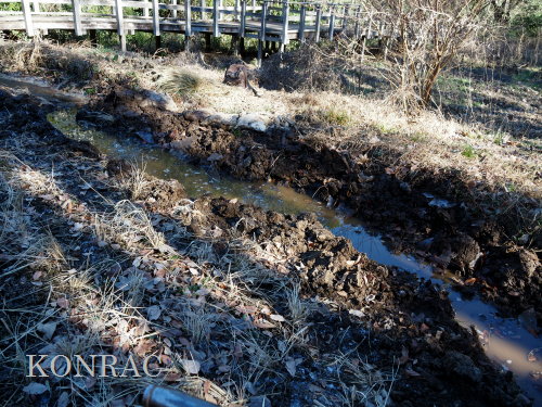 昨秋、水漏れ穴があった辺りの溝(水路)を内側に移動してみました。