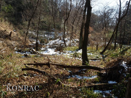 (上図)活動場所図 2/8(日)の降雪によって、若しかすると田圃の状態が変っているかも知れないと思い、谷戸に降りて、田圃まで来ました。 上の田圃から下の田圃にかけての木道下の草地には、多数のアオジが来ていました。