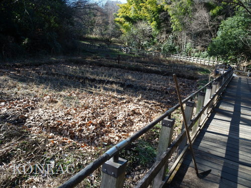 (上図)活動場所図 上の田圃に落葉を投入しました。 谷戸の田圃は、落葉だけを肥料として、稲を育てています。 その落葉は、指定管理者がイベントに使用した落葉をいただいています。 今朝、田圃に置いたとの連絡をいただいたので、田圃に投入しました。