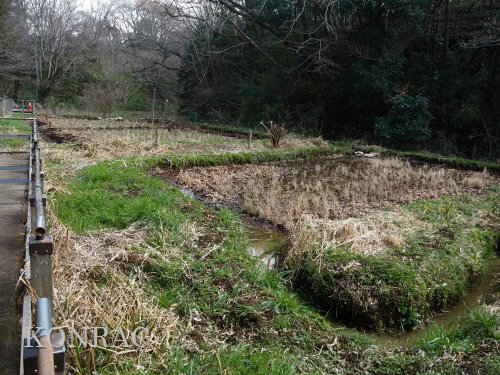 上の田圃の導水路の水は涸れていませんでしたが、枯葉や泥が溜まって、流れが悪くなっている可能性があります。