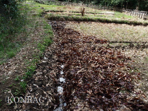 下の段は、畦沿いの溝に溜まった落葉の下には、水が染みてきてはいました。